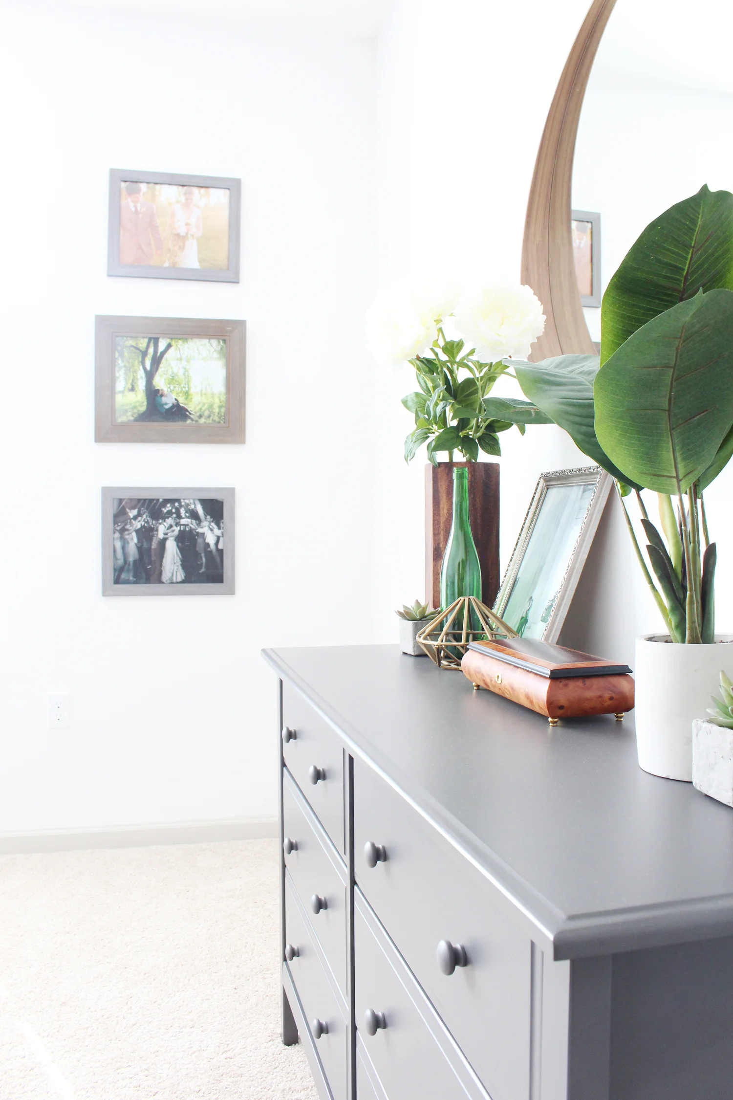 There are so many things to love about this room - those botanical pillows, the sweet white lamps on the bedside tables, and that dark charcoal dresser are a few of my favorites. Also, I've got to give Courtney some serious credit for styling the whole room. She's got skills, y'all! She made my job so easy. I just showed up and snapped the photos.