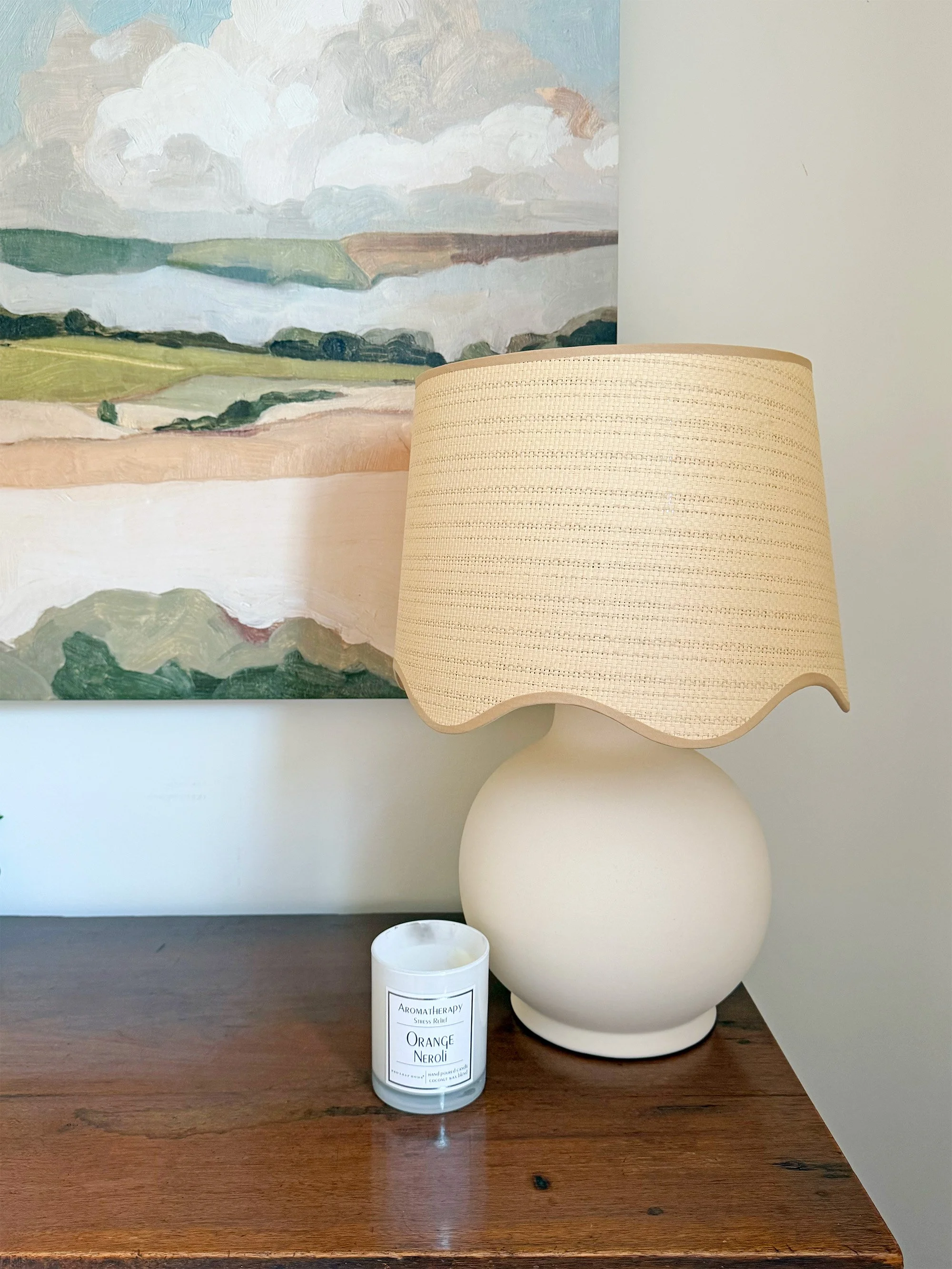 What I love about it: This lamp is cute as a button! It’s neutral, but has enough detail to make it visually interesting. I currently have it on top of my grandmother’s antique jelly cupboard and in front of my Emma Scarvey canvas. I love the mix of modern, coastal, and traditional. That little vignette is my style in a nutshell.