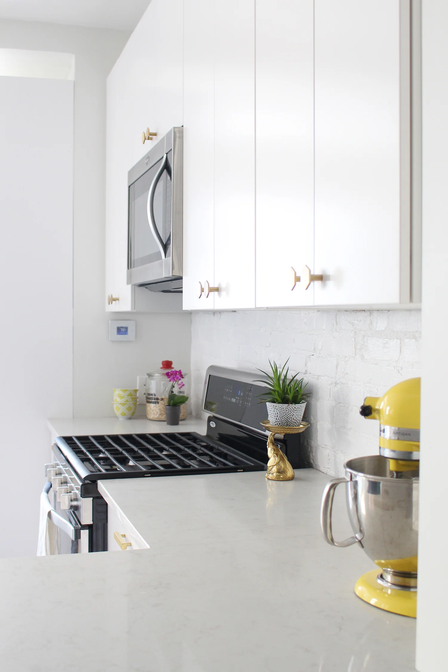 In a word, YES. We've been extremely happy with our quartz countertops. They look just as good as they did on installation day, and I still love the design we chose. They work together beautifully with our modern white cabinets (the Veddinge from IKEA), and other materials and finishes like our brass hardware. It's neutral, but still visually interesting up close.