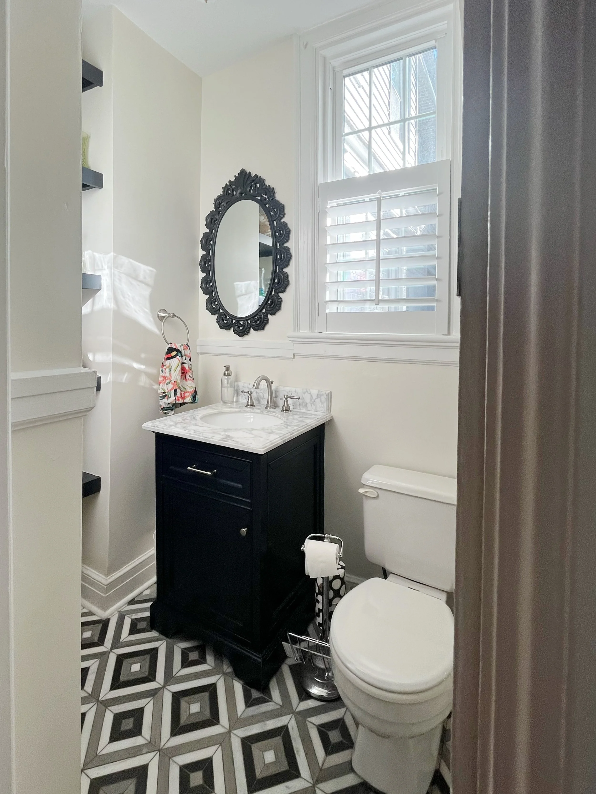 Fun fact: this 1920s house was originally built as a duplex, so one of the units had two bedrooms on the first floor that shared a Jack-and-Jill style bathroom. Previous owners have used those for different purposes, including a first floor master + office, and a family room + guest room. Our family of four occupies the bedrooms upstairs and we have a powder room off the kitchen, so we don’t need more bedroom and bathrooms downstairs.
