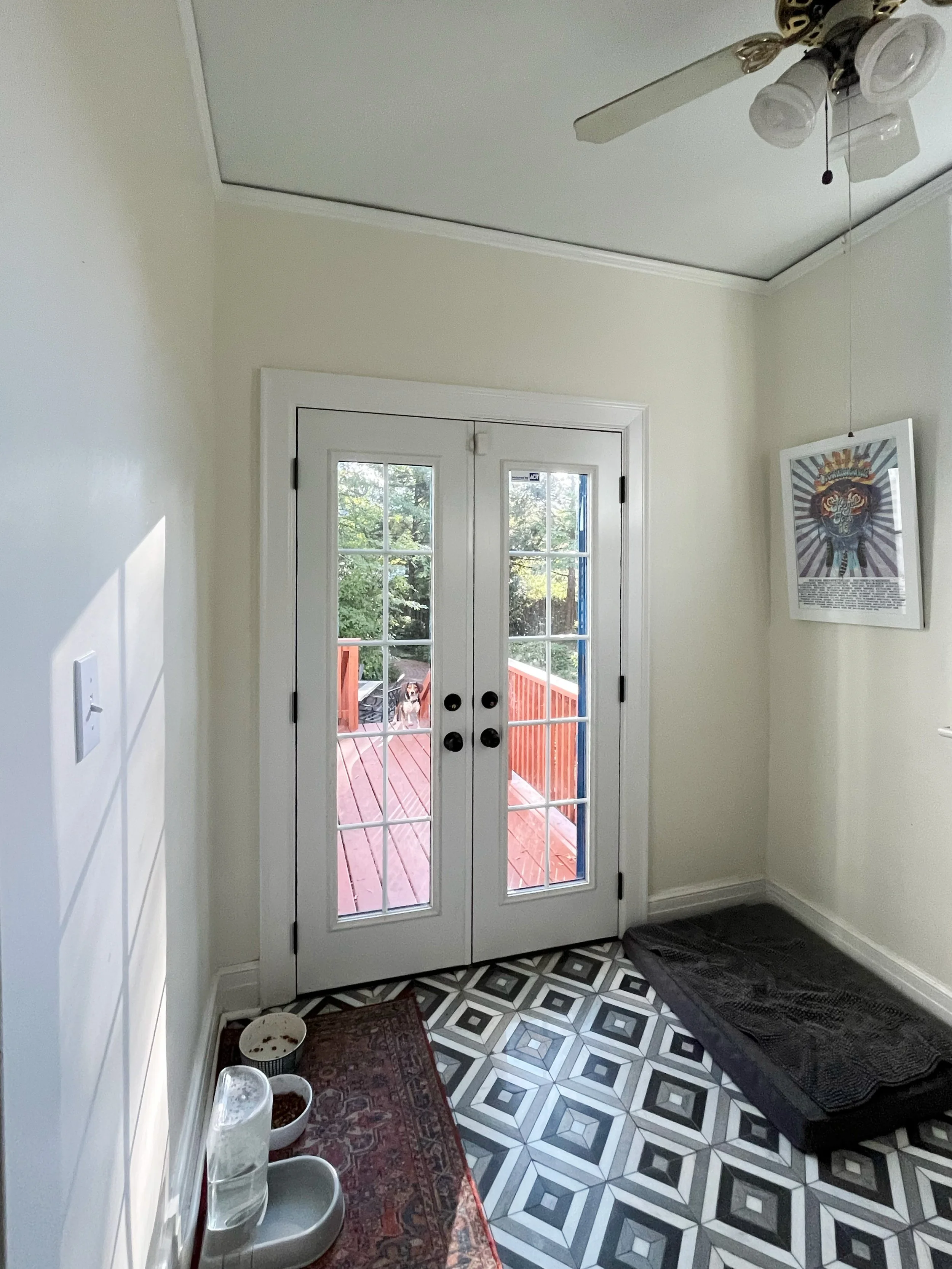 Finally, the mudroom! This is a workhorse in our house, but it’s a general mess right now without the right storage. I cannot wait to add some built-ins and a good set of hooks for coats back here. It’s also the only access to the backyard, so guests walk through here constantly, which is an incentive to make it functional and pretty. We can do better than wire shelving like we have now!