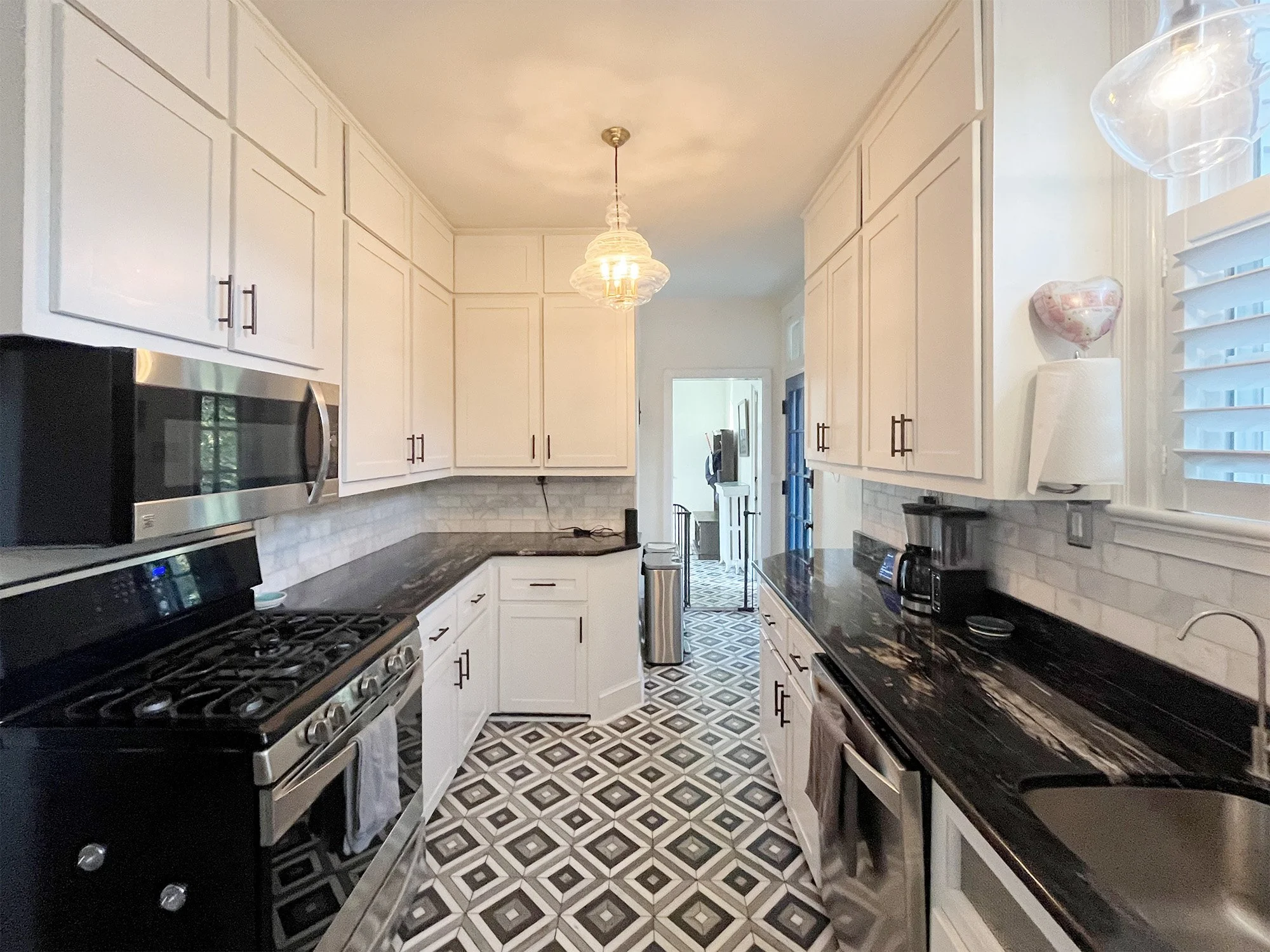 Let’s walk through the back half of the house as it looked when we toured it with previous owner’s furniture and decor - starting with the kitchen.