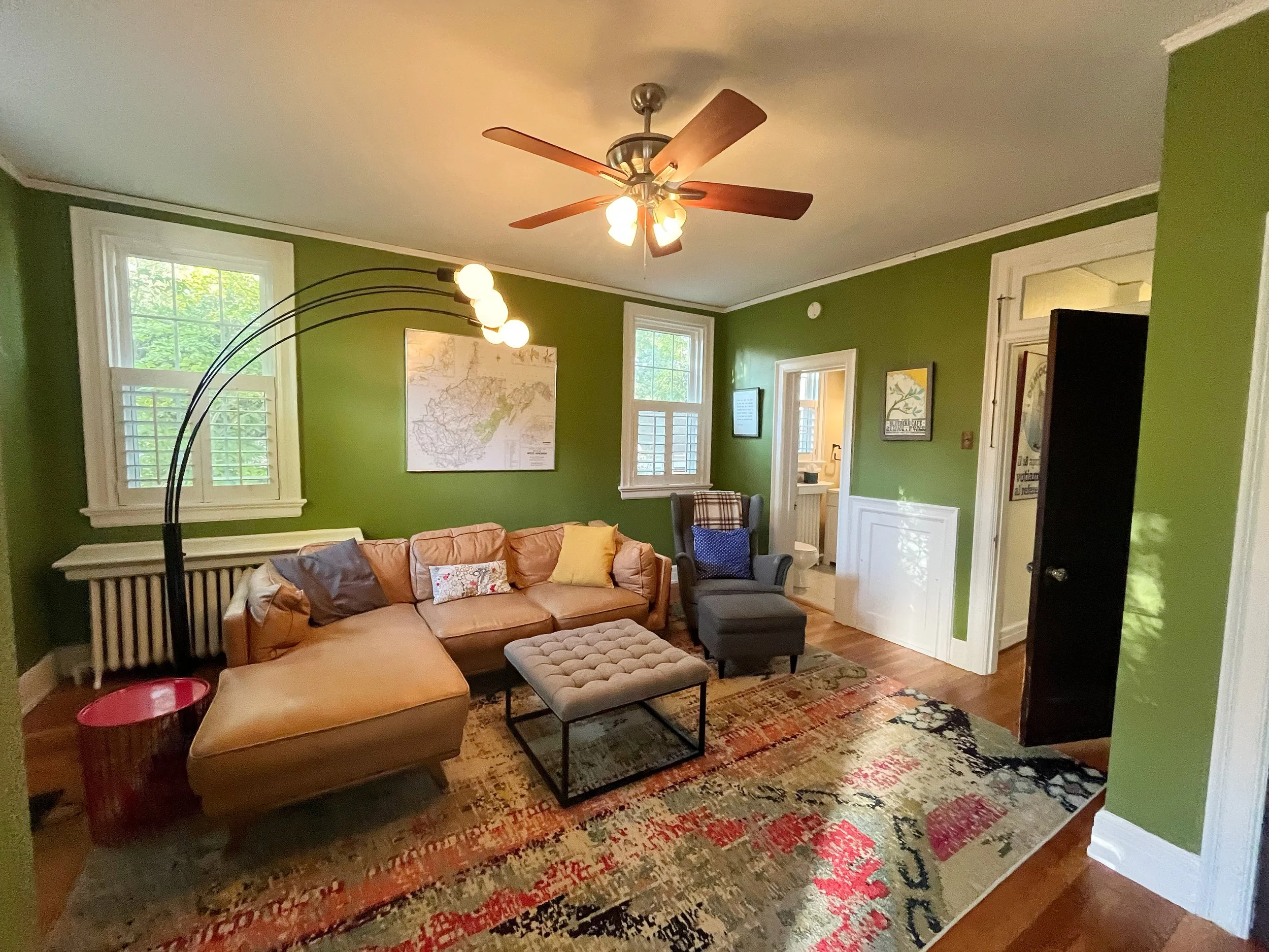 Then at the end of the hallway, you enter what we affectionately call “the green room.” Creative, aren’t we?! You can see a peek of the Jack and Jill bathroom here that sits between the guest bedroom and the green room.