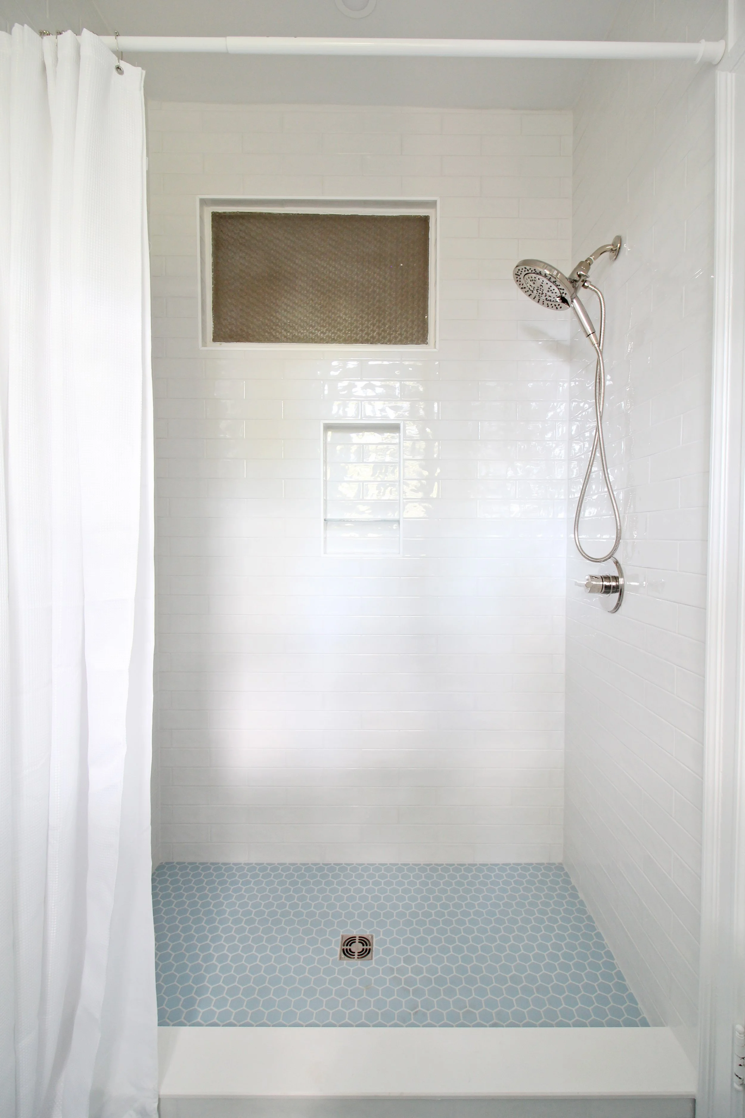Think that tile looks familiar? It’s actually the same white tile we used in my daughter’s bathroom! We laid it in a classic brick pattern so it feels totally different, but it’s fun that they share that in common. We used the same shower head as well since it needed to serve the same purpose. Again, big fan! My son has given it his full approval and loves to stand under the stream.