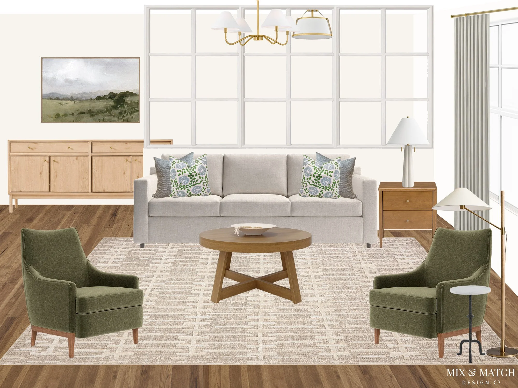 These examples are from real Full Room E-Design projects! These true-to-life boards use the actual pieces sourced for the spaces, giving you a realistic view of what the space will look like with new furniture and decor.